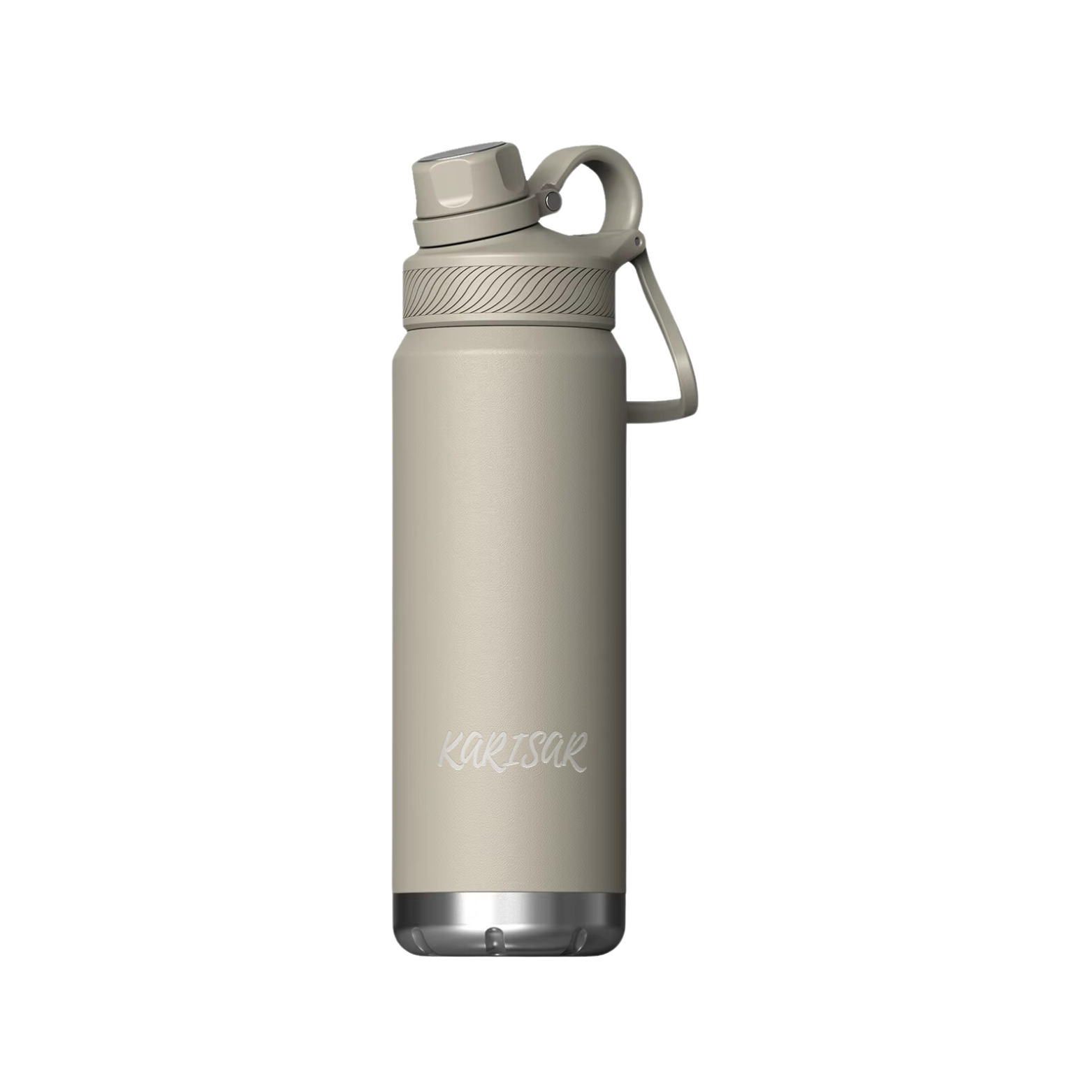 Durch den integrierten Henkel lässt sich die Flasche bequem transportieren.